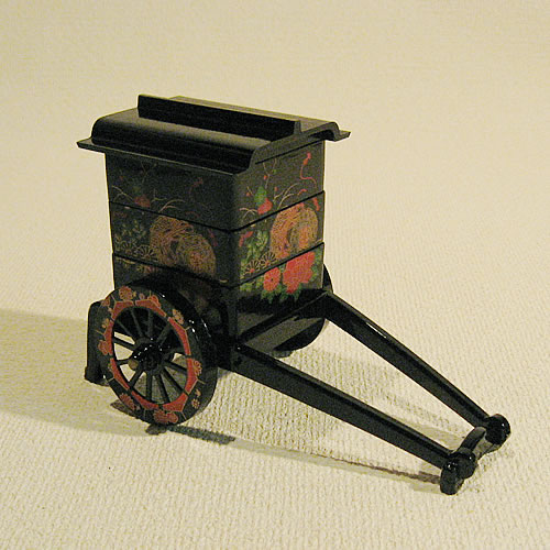 御所車が重箱になった!!京都のおみやげ(京土産)・贈り物御所車の重箱 小価格: 1,785円レビュー評価: 0.0 レビュー数:0 商品内容車の荷台は三重の重箱になっていて小物類やお菓子などをいれることができ、お部屋のインテリアとして飾ることができます。色は黒と赤の二色あります。お友達へのちょっとしたプレゼントとして、海外へのおみやげとしても最適です!!材質【素地の種類】 ユリア樹脂【表面の塗装】 ウレタン塗装サイズ全体:縦120×横185×高さ120mm車輪:直径60mm重箱:縦65×横65×高さ82mm |